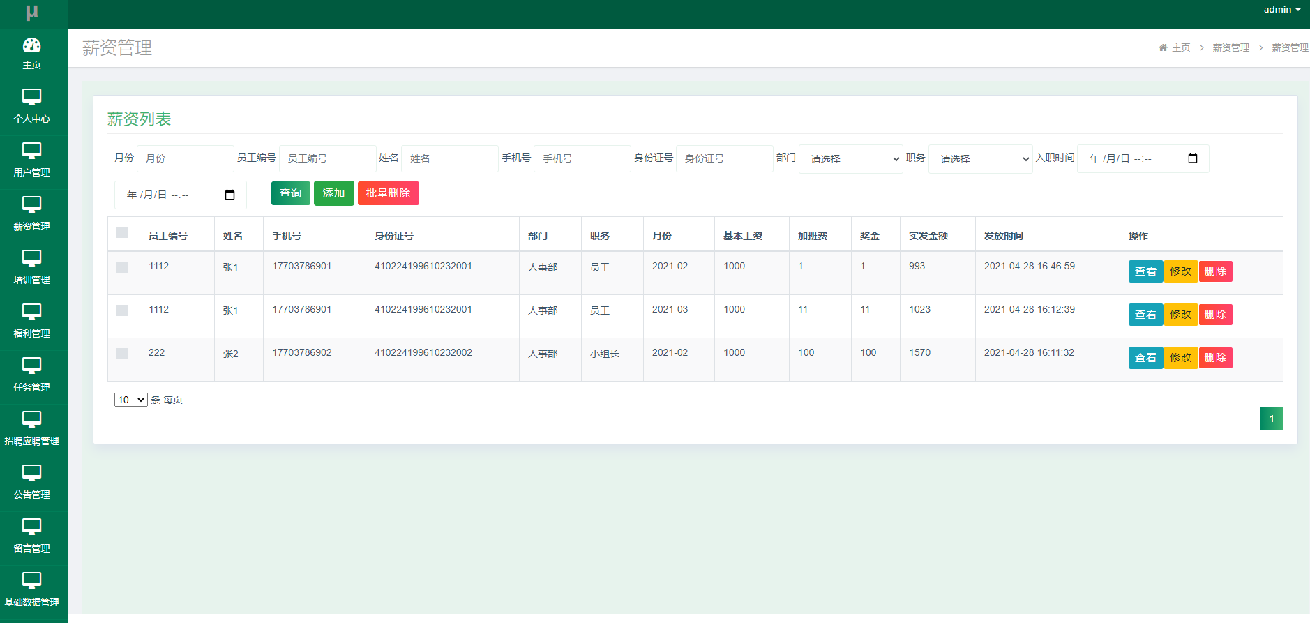 图5.2 薪资管理页面